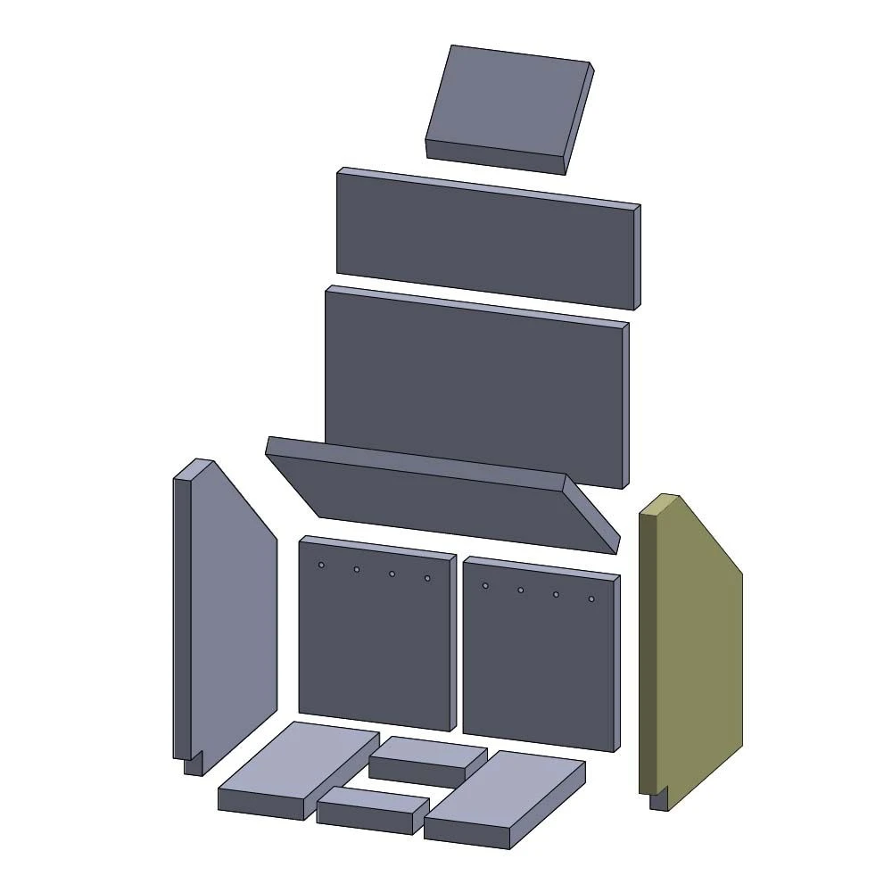 **Hierbei handelt es sich nicht um Original Oranier Kaminofen Ersatzteile, lediglich sind die Produkte genau passend für die in der Beschreibung genannten Fabrikate. Die Feuerraumauskleidung kann alternativ für die genannten Kamine genutzt werden.