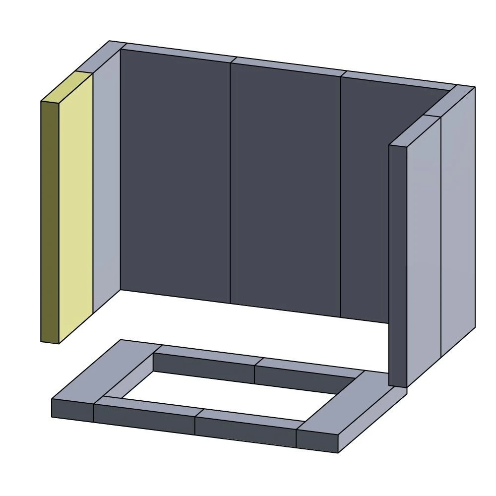 Wandstein vorne/hinten links/rechts 330x125x25mm (Vermiculite) Feuerraumauskleidung, passend für Techfire** Kamine: